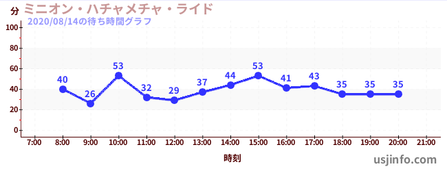 • ミニオン・ハチャメチャ・ライド$B$N(B2020年08月14日の待ち時間