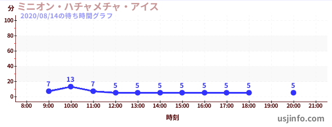 • ミニオン・ハチャメチャ・アイス$B$N(B2020年08月14日の待ち時間