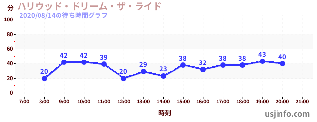 • ハリウッド・ドリーム・ザ・ライド$B$N(B2020年08月14日の待ち時間