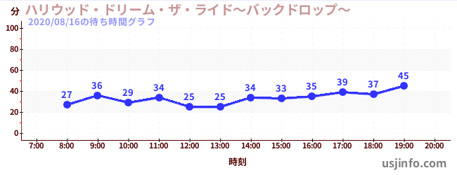 • ハリウッド・ドリーム・ザ・ライド〜バックドロップ〜$B$N(B2020年08月16日の待ち時間