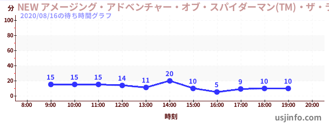 • NEW アメージング・アドベンチャー・オブ・スパイダーマン(TM)・ザ・ライド 4K3D$B$N(B2020年08月16日の待ち時間