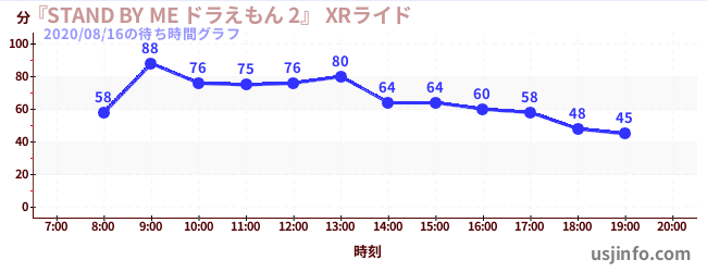 • 『STAND BY ME ドラえもん 2』 XRライド$B$N(B2020年08月16日の待ち時間