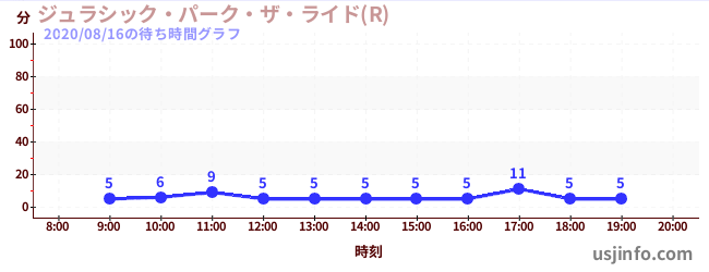 • ジュラシック・パーク・ザ・ライド(R)$B$N(B2020年08月16日の待ち時間