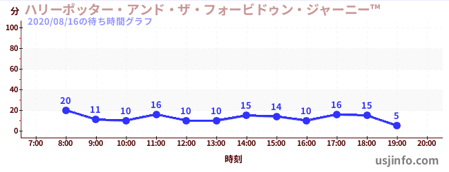 • ハリーポッター・アンド・ザ・フォービドゥン・ジャーニー™$B$N(B2020年08月16日の待ち時間