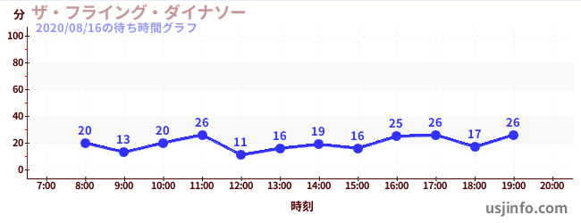 • ザ・フライング・ダイナソー$B$N(B2020年08月16日の待ち時間