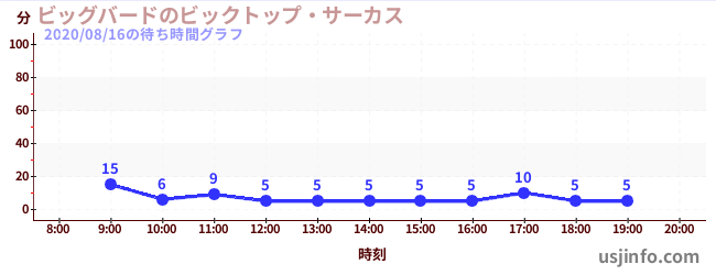 • ビッグバードのビックトップ・サーカス$B$N(B2020年08月16日の待ち時間