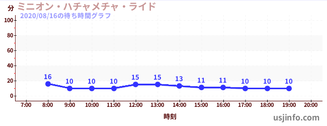 • ミニオン・ハチャメチャ・ライド$B$N(B2020年08月16日の待ち時間