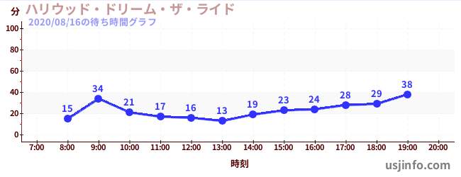 • ハリウッド・ドリーム・ザ・ライド$B$N(B2020年08月16日の待ち時間