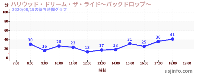 • ハリウッド・ドリーム・ザ・ライド〜バックドロップ〜$B$N(B2020年08月19日の待ち時間