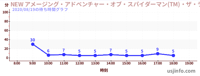 • NEW アメージング・アドベンチャー・オブ・スパイダーマン(TM)・ザ・ライド 4K3D$B$N(B2020年08月19日の待ち時間