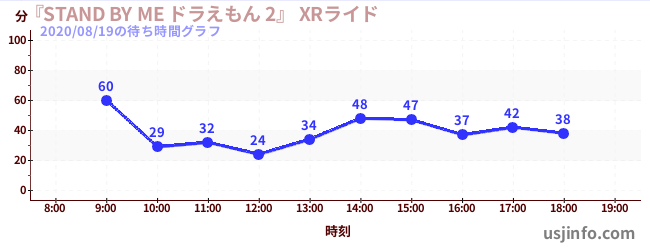 • 『STAND BY ME ドラえもん 2』 XRライド$B$N(B2020年08月19日の待ち時間