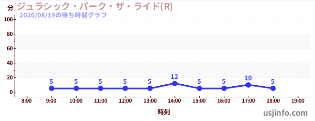 • ジュラシック・パーク・ザ・ライド(R)$B$N(B2020年08月19日の待ち時間