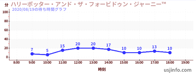 • ハリーポッター・アンド・ザ・フォービドゥン・ジャーニー™$B$N(B2020年08月19日の待ち時間