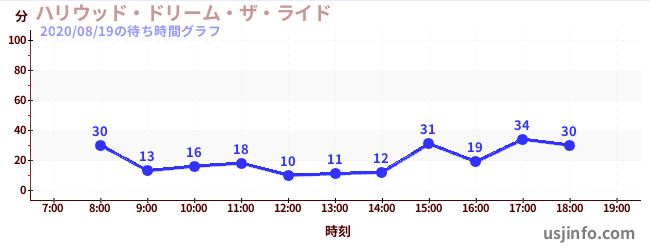 • ハリウッド・ドリーム・ザ・ライド$B$N(B2020年08月19日の待ち時間