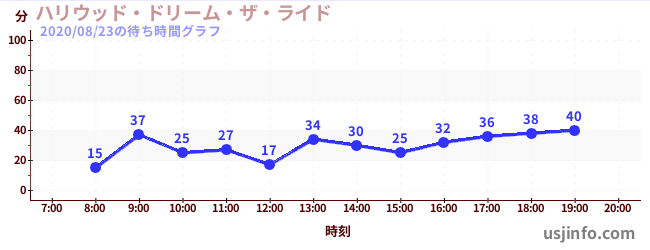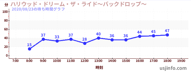 • ハリウッド・ドリーム・ザ・ライド〜バックドロップ〜$B$N(B2020年08月23日の待ち時間