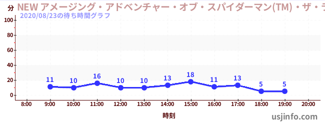 • NEW アメージング・アドベンチャー・オブ・スパイダーマン(TM)・ザ・ライド 4K3D$B$N(B2020年08月23日の待ち時間