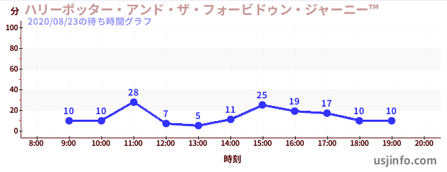 • ハリーポッター・アンド・ザ・フォービドゥン・ジャーニー™$B$N(B2020年08月23日の待ち時間