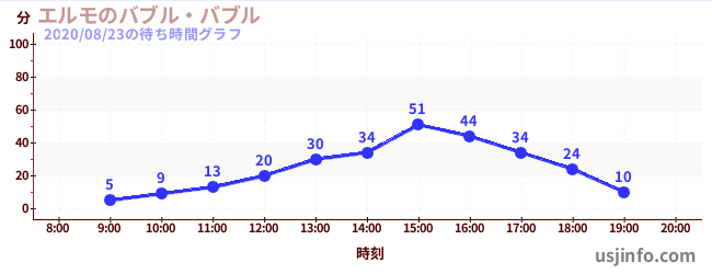 • エルモのバブル・バブル$B$N(B2020年08月23日の待ち時間