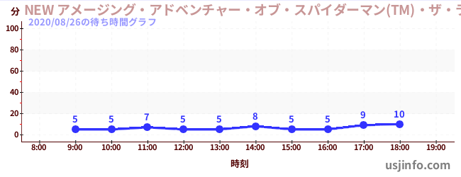 • NEW アメージング・アドベンチャー・オブ・スパイダーマン(TM)・ザ・ライド 4K3D$B$N(B2020年08月26日の待ち時間