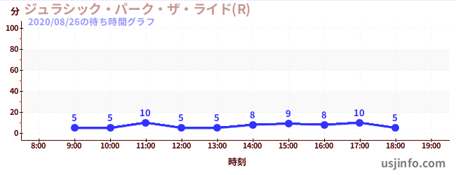 • ジュラシック・パーク・ザ・ライド(R)$B$N(B2020年08月26日の待ち時間