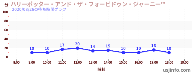 • ハリーポッター・アンド・ザ・フォービドゥン・ジャーニー™$B$N(B2020年08月26日の待ち時間