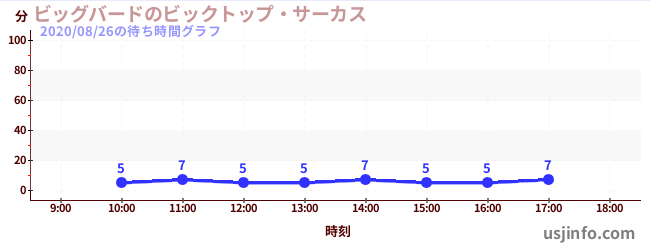 • ビッグバードのビックトップ・サーカス$B$N(B2020年08月26日の待ち時間