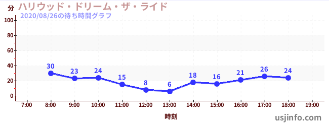 • ハリウッド・ドリーム・ザ・ライド$B$N(B2020年08月26日の待ち時間