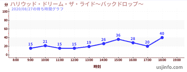 • ハリウッド・ドリーム・ザ・ライド〜バックドロップ〜$B$N(B2020年08月27日の待ち時間