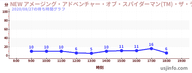 • NEW アメージング・アドベンチャー・オブ・スパイダーマン(TM)・ザ・ライド 4K3D$B$N(B2020年08月27日の待ち時間