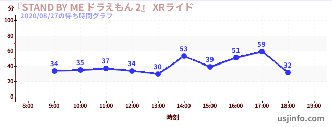 • 『STAND BY ME ドラえもん 2』 XRライド$B$N(B2020年08月27日の待ち時間
