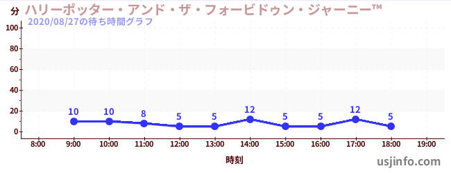 • ハリーポッター・アンド・ザ・フォービドゥン・ジャーニー™$B$N(B2020年08月27日の待ち時間