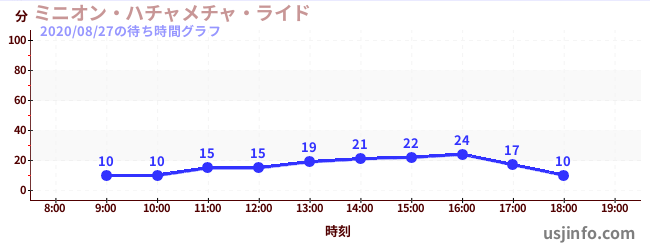 • ミニオン・ハチャメチャ・ライド$B$N(B2020年08月27日の待ち時間