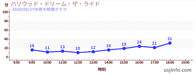 • ハリウッド・ドリーム・ザ・ライド$B$N(B2020年08月27日の待ち時間