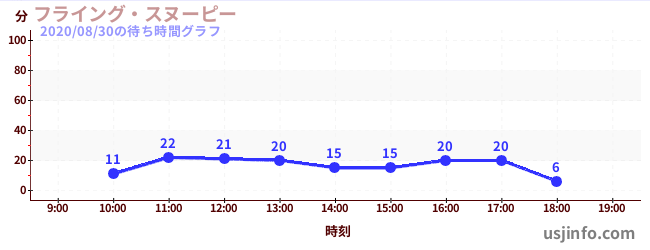 • フライング・スヌーピー$B$N(B2020年08月30日の待ち時間