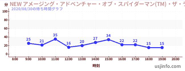 • NEW アメージング・アドベンチャー・オブ・スパイダーマン(TM)・ザ・ライド 4K3D$B$N(B2020年08月30日の待ち時間