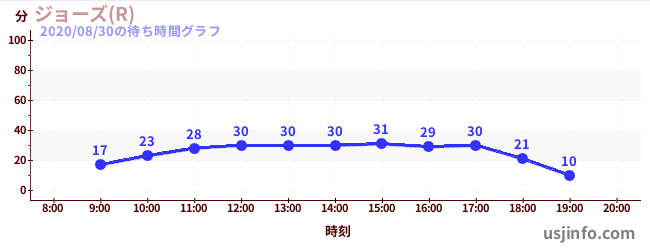 • ジョーズ(R)$B$N(B2020年08月30日の待ち時間