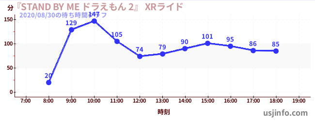 • 『STAND BY ME ドラえもん 2』 XRライド$B$N(B2020年08月30日の待ち時間