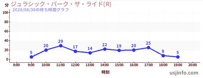 • ジュラシック・パーク・ザ・ライド(R)$B$N(B2020年08月30日の待ち時間