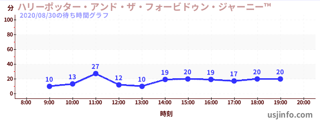 • ハリーポッター・アンド・ザ・フォービドゥン・ジャーニー™$B$N(B2020年08月30日の待ち時間