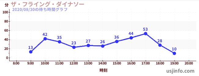 • ザ・フライング・ダイナソー$B$N(B2020年08月30日の待ち時間