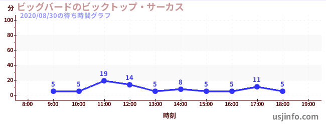 • ビッグバードのビックトップ・サーカス$B$N(B2020年08月30日の待ち時間