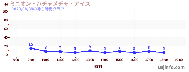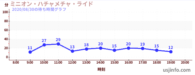 • ミニオン・ハチャメチャ・ライド$B$N(B2020年08月30日の待ち時間