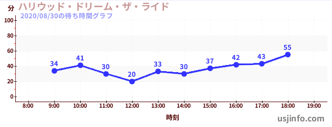 • ハリウッド・ドリーム・ザ・ライド$B$N(B2020年08月30日の待ち時間