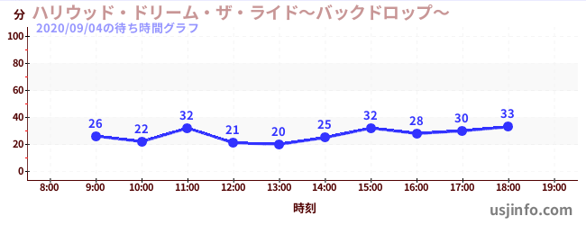 • ハリウッド・ドリーム・ザ・ライド〜バックドロップ〜$B$N(B2020年09月04日の待ち時間