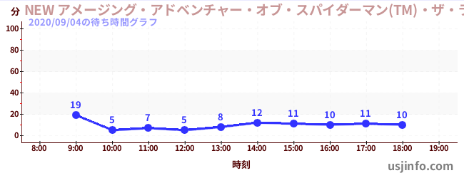 • NEW アメージング・アドベンチャー・オブ・スパイダーマン(TM)・ザ・ライド 4K3D$B$N(B2020年09月04日の待ち時間