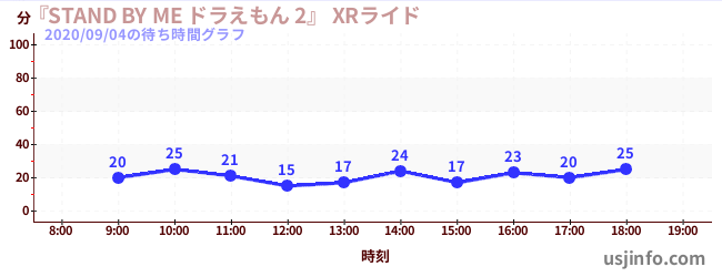• 『STAND BY ME ドラえもん 2』 XRライド$B$N(B2020年09月04日の待ち時間