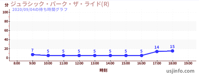 • ジョーズ(R)$B$N(B2020年09月04日の待ち時間