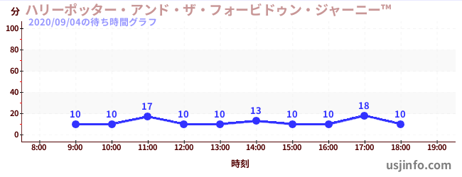 • ハリーポッター・アンド・ザ・フォービドゥン・ジャーニー™$B$N(B2020年09月04日の待ち時間
