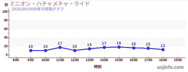 • ミニオン・ハチャメチャ・ライド$B$N(B2020年09月04日の待ち時間