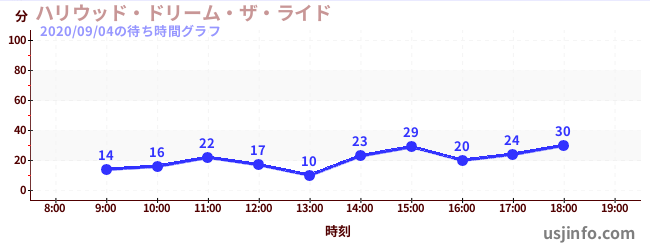 • ハリウッド・ドリーム・ザ・ライド$B$N(B2020年09月04日の待ち時間